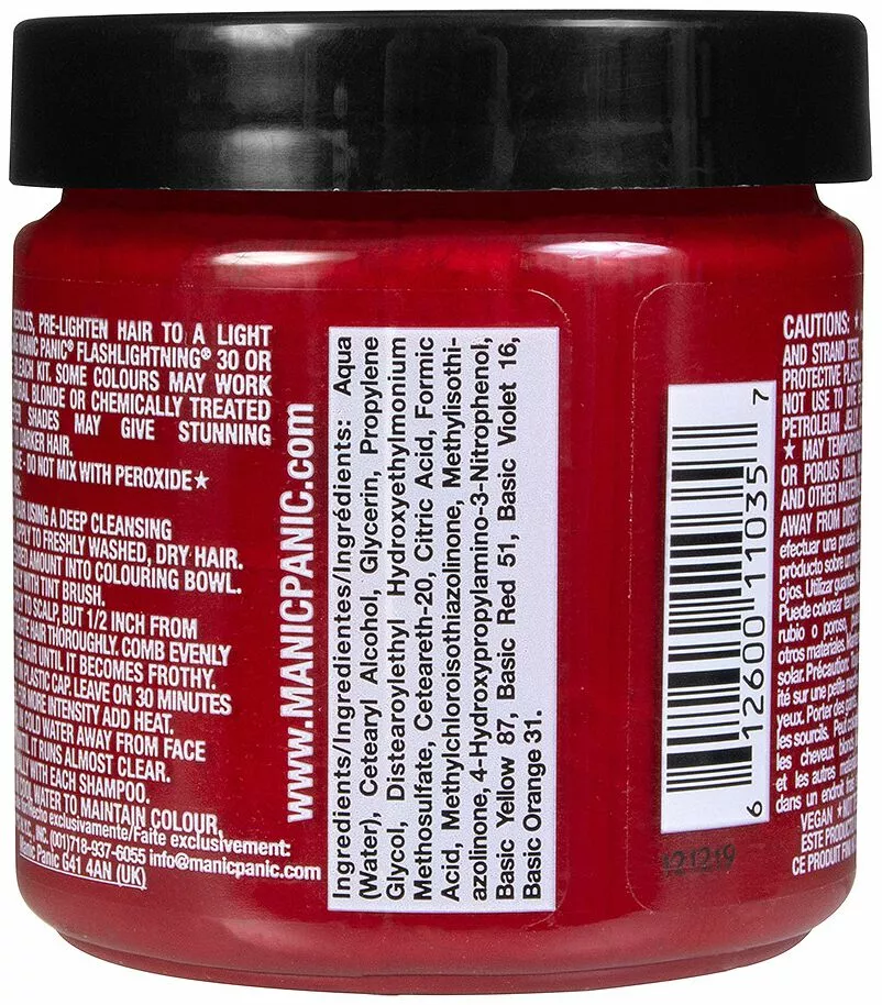 Voor het beste resultaat is het verstandig het haar vooraf te kleuren naar een lichte tint met de Manic Panic Flashlightning Hair Bleaching kit (Art.no: 256279).