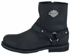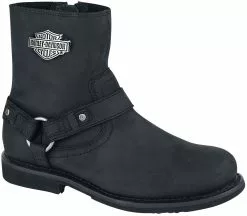 Op zoek naar een paar robuuste, stoere laarzen voor wanneer je op de motor zit? Dan hebben wij wat moois voor je! Deze “Scout”-laarzen van Harley-Davidson zijn gemaakt van echt leder en voorzien van decoratieve banden met studs, die bevestigd zijn aan dezelfde ring. Daarbij is de zijkant van de laarzen voorzien van een metalen applicatie met daarop het logo van Harley-Davidson. Ook de onderkant van de zool toont het logo van Harley-Davidson. Tot slot zijn de laarzen gemakkelijk aan en uit te trekken dankzij de ritssluiting in de zijkant.