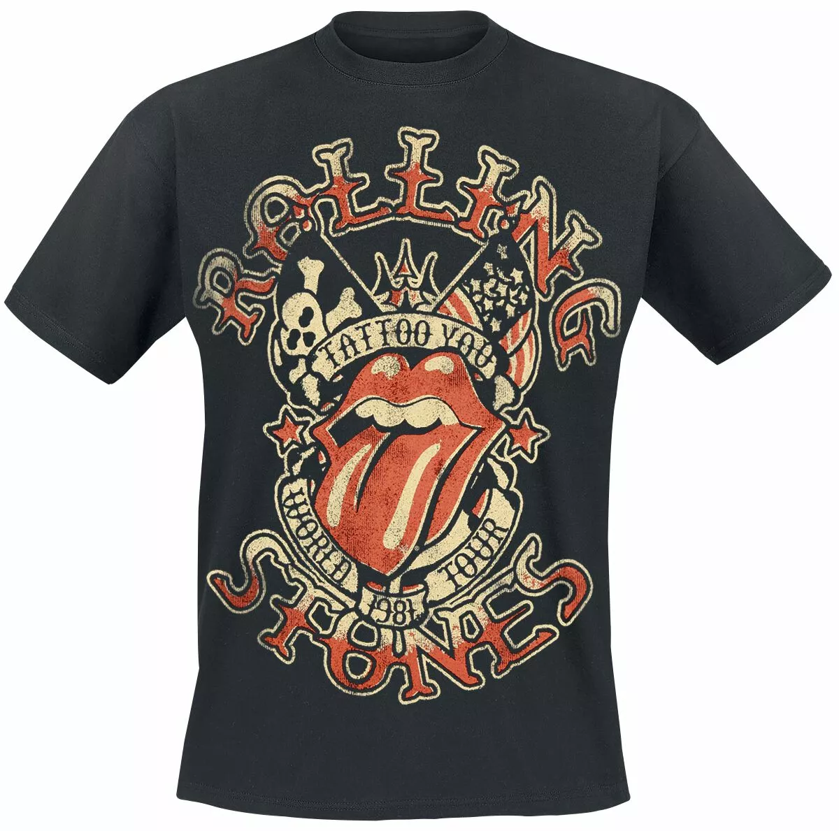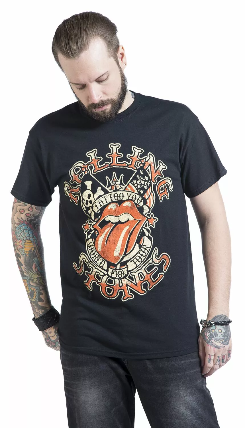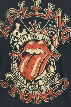 “A good thing never ends” – The Rolling Stones leven hun Rock’n’Roll leven zoals niet veel andere bands dat doen. Het zwarte “Tattoo Your Tour” T-Shirt toont het bekende logo op de voorkant: de uitgestoken tong. Een logo dat staat voor de provocatie en de levensstijl van Rock`n´Roll. Het shirtontwerp werd ook gebruikt voor de legendarische Rolling Stones tour in 1981.