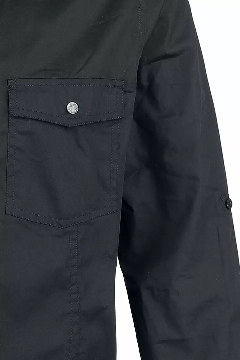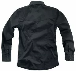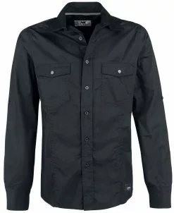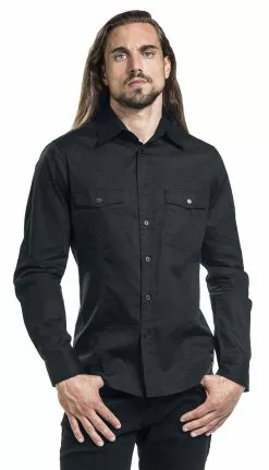Het Basic Shirt van Black Premium by EMP is in klassiek en decent zwart. Hierdoor past het overhemd bij werkelijk elke gelegenheid en ligt er niet al te dik op. Het overhemd heeft een klassieke hemdsboord, een knopenrij, lange mouwen en twee borstzakken met drukknopen.