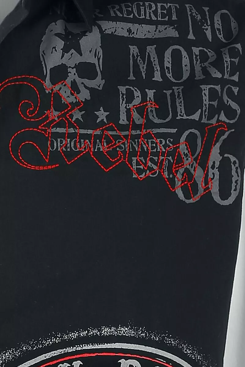 – Verschillende prints op de voorkant, achterkant en zijkanten: “Rock Rebel”, “No More Rules” en “Original Sinners”