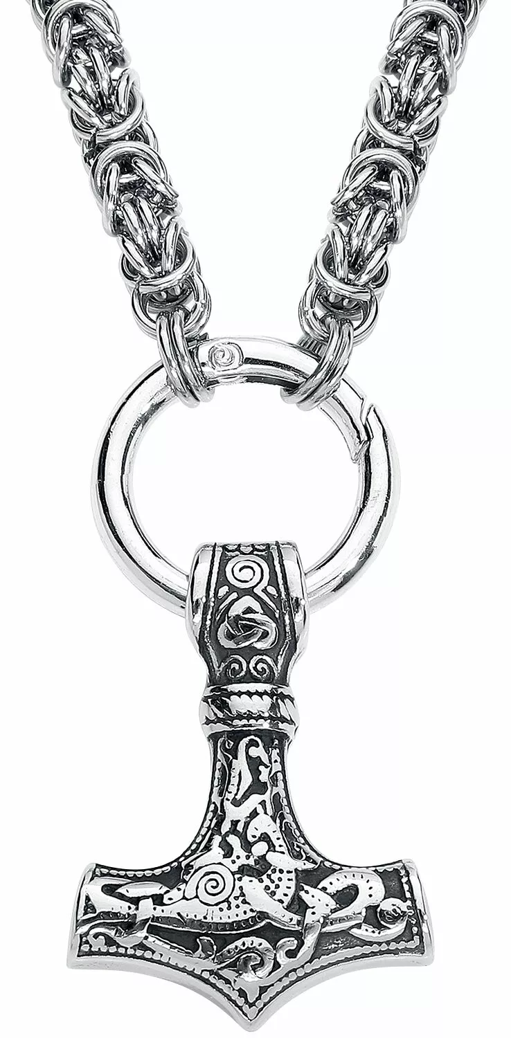 – Massieve halsketting met de hamer van Thor aan twee kanten versierd