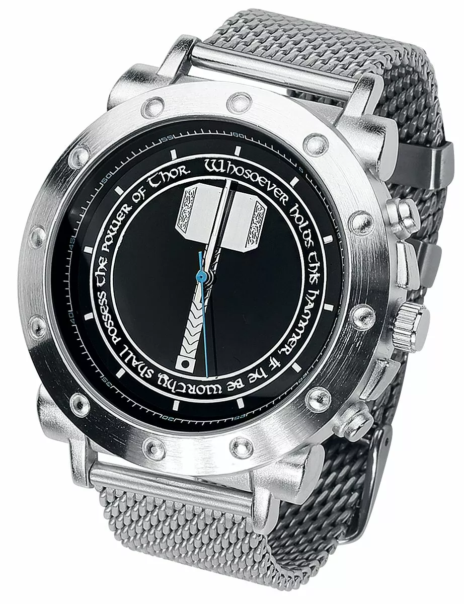 – eenvoudig polshorloge met afbeelding van de hamer van Thor op de wijzerplaat