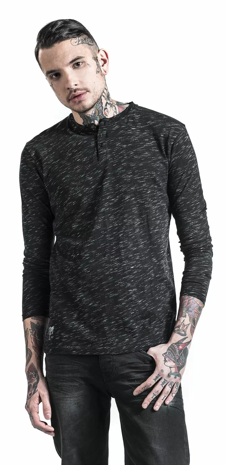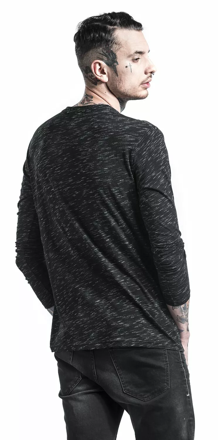 De longsleeve “Through the Glass” van Black Premium by EMP is perfect voor iedereen die eens wat anders wil dan helemaal zwart. Dit donkere kledingstuk heeft een buitengewoon uiterlijk dankzij het effectgaren. Daarbij heeft de longsleeve een borduursel met logo boven de onderzoom en een knopenrij bij de hals.