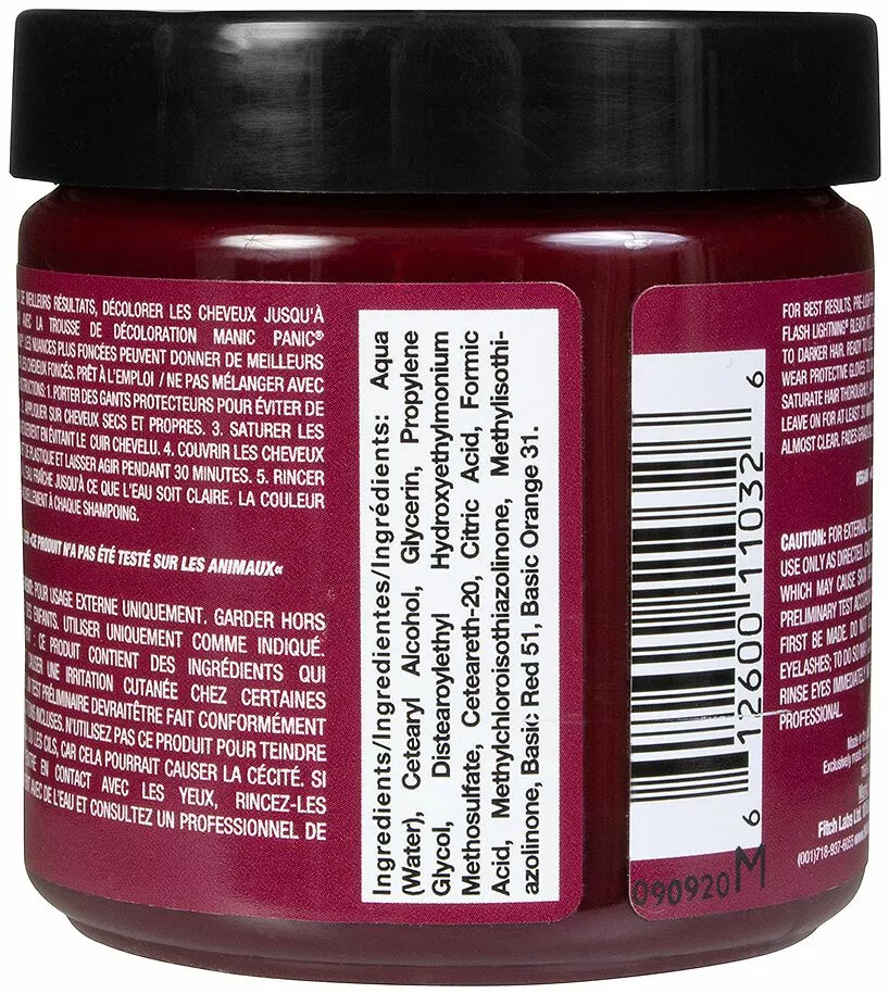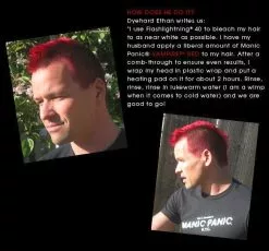 Voor het beste resultaat is het verstandig het haar vooraf te kleuren naar een lichte tint met de Manic Panic Flashlightning Hair Bleaching kit (Art.no: 256279).