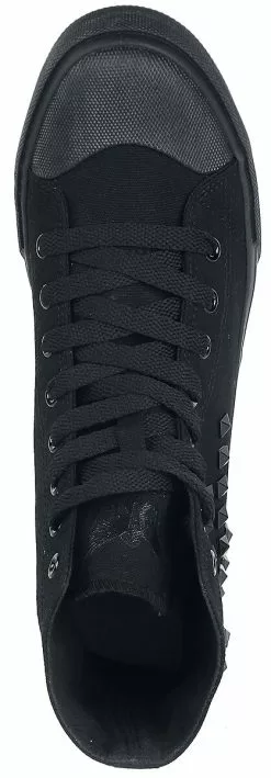 Zwarte sneakers met Rockhand patch op de schoentong en logoprint op de hiel. De sneakers zijn versierd met zwarte studs, in de schoen bevestigd. Aan de binnenkant is de schoen gevoerd met stof zodat je de studs niet kunt voelen of zien.